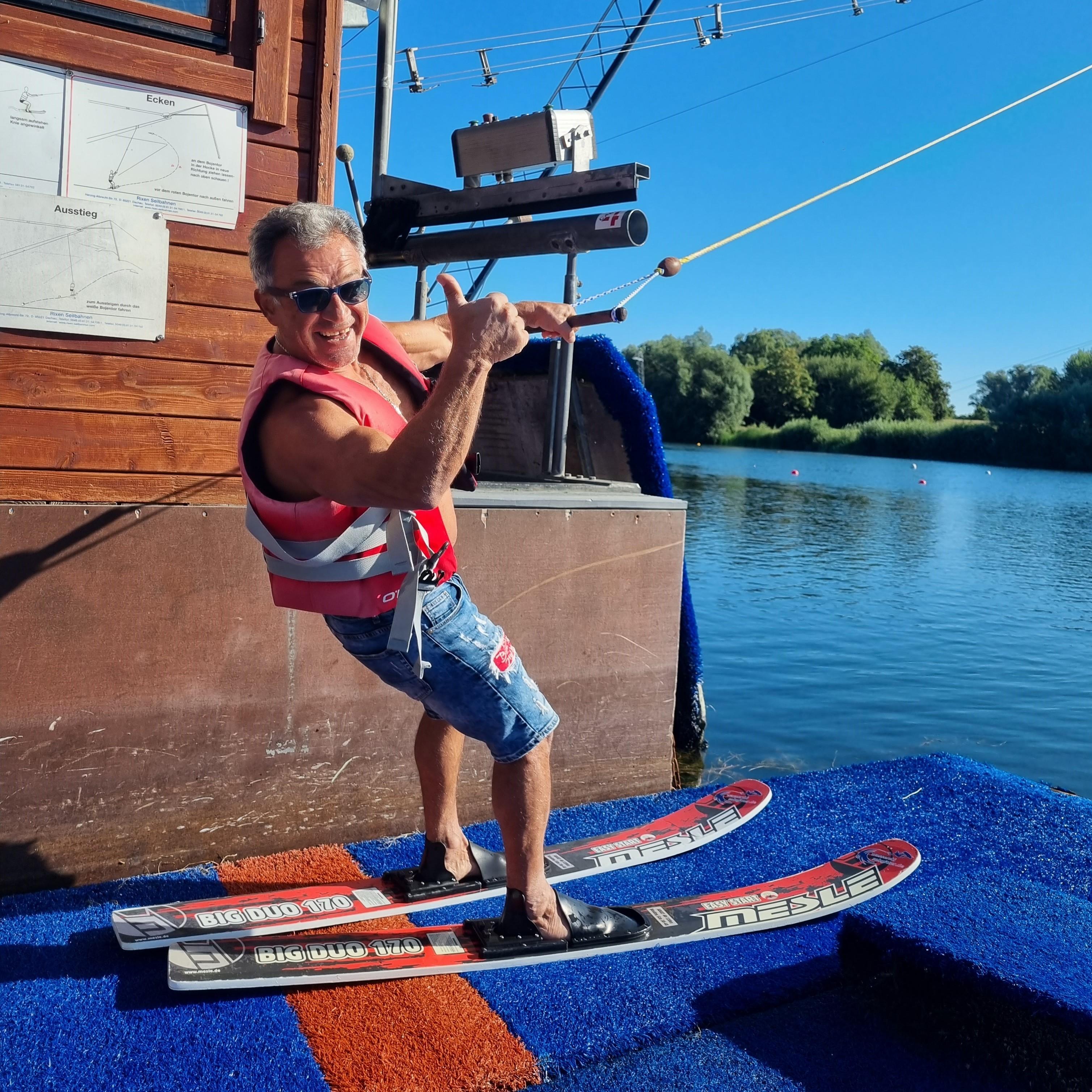 Dieses Rundum-sorglos-Paket beinhaltet neben deiner Fahrkarte, eine Video-Einweisung in unserem Pro Shop sowie sämtliche zur Verfügung stehenden Verleihmaterialien wie kurze oder lange Neoprenanzüge (entsprechend der Wetterlage), alle Arten von Leihski (Paarski, Monoski, Kneeboard oder Trickski), Wakeboards für jedes Fahrlevel, egal ob Einsteiger oder Profi, sowie Schwimmweste und Helm.