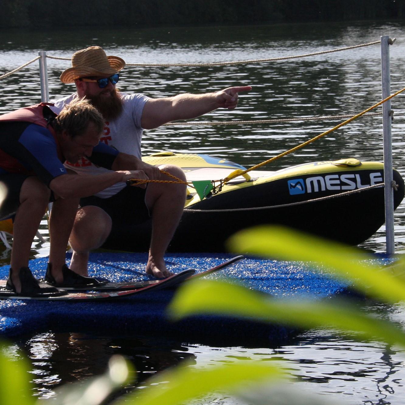 Unser Rundum-sorglos-Paket für exklusive Gruppenbuchungen an der kleinen Seilbahn beinhaltet die Betreuung und Einweisung durch einen erfahrenen Coach sowie sämtliche zur Verfügung stehenden Verleihmaterialien wie kurze oder lange Neoprenanzüge (entsprechend der Wetterlage), alle Arten von Leihski (Paarski, Monoski, Kneeboard oder Trickski), Wakeboards für jedes Fahrlevel, egal ob Einsteiger oder Profi, Schwimmwesten und Helme sowie die Banane und der fliegende Teppich.